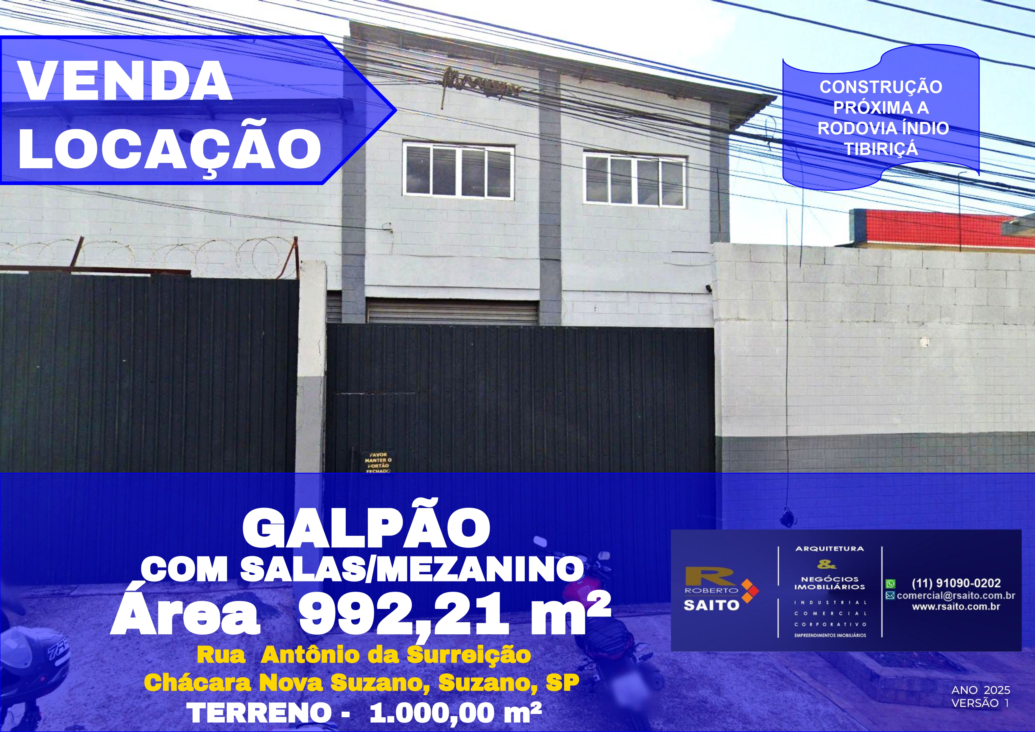 Galpão de 1.000,00 m² em Suzano/SP. Disponível para locação e venda, galpão de 992,21 m² de área construída, estrategicamente localizado em Suzano, próximos dos principais polos industriais e logísticos da região. Com uma estrutura sólida e funcional, este empreendimento oferece: Setores de Galpão e Apoio: Dois galpões principais (293,13 m² e 357,15 m²) e uma área administrativa completa (341,93 m²) e Pé direito de 8,40m para suporte às suas operações.