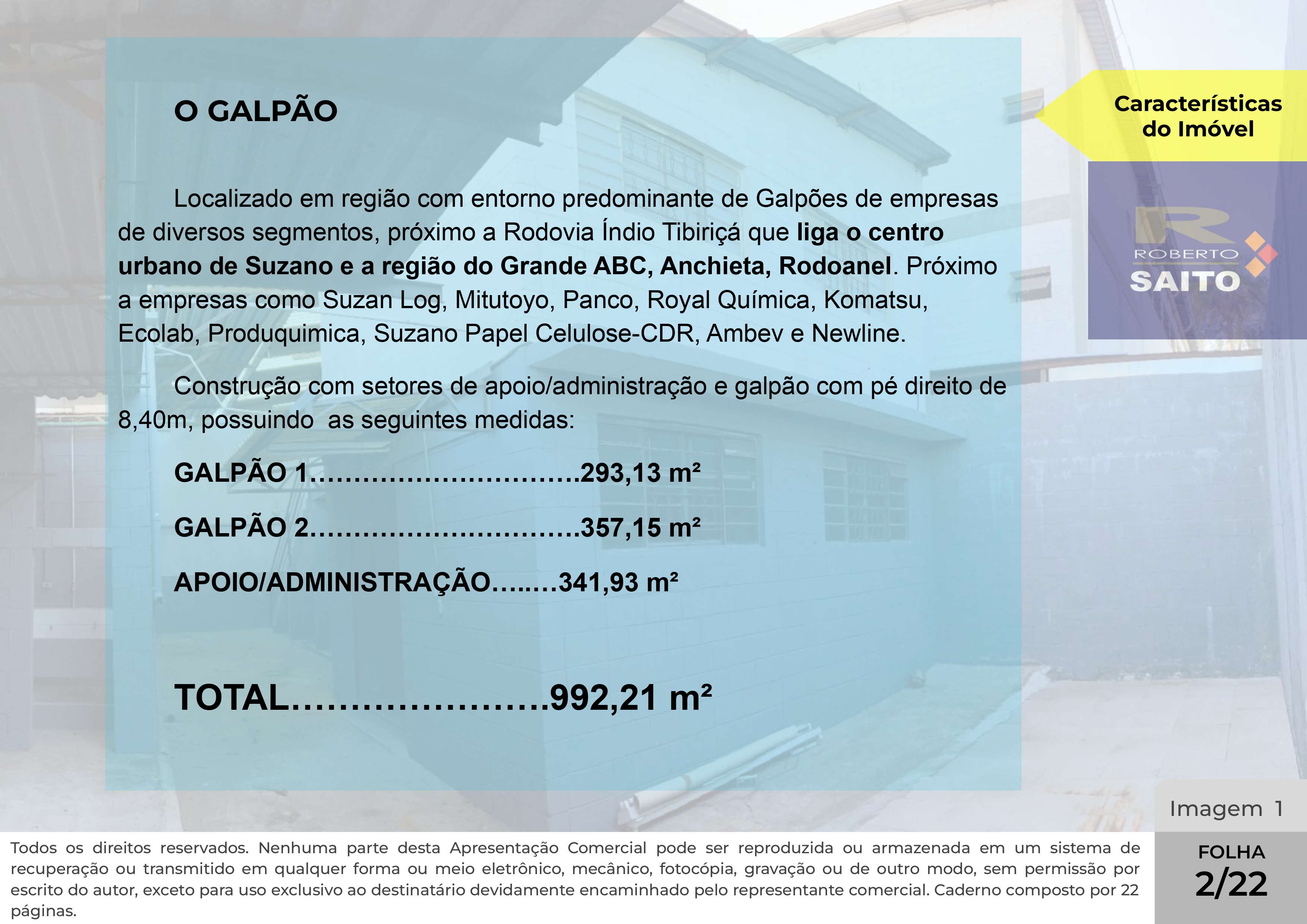 Localização privilegiada: Situado em uma área com alta concentração de empresas renomadas (como Panco, Ambev e Suzano Papel e Celulose), o galpão oferece fácil acesso a importantes vias, como a Rodovia Índio Tibiriçá, que conecta diretamente a Suzano e a região do Grande ABC, ao sistema Anchieta e ao Rodoanel. Uma oportunidade imperdível para empresas que buscam eficiência, segurança e uma localização estratégica para expandir seus negócios.